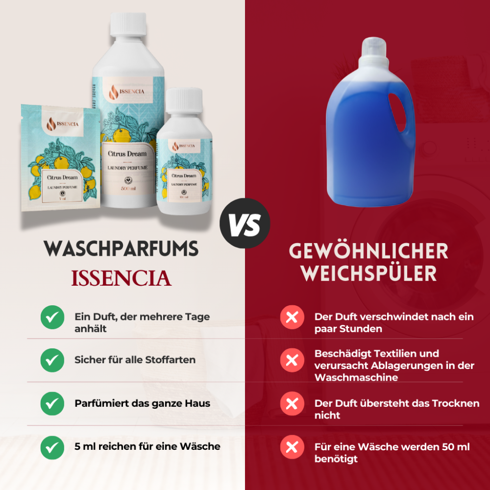 Was macht sie so unwiderstehlich? Sie enthalten konzentrierte Duftöle, die Ihrer Wäsche einen intensiven und langanhaltenden Duft verleihen – nicht nur stunden-, sondern tagelang. Im Gegensatz zu herkömmlichen Weichspülern, deren Duft schnell verfliegt, bleiben Wäscheparfums auf Ihrer Kleidung, in Ihrem Kleiderschrank und im ganzen Haus haften.